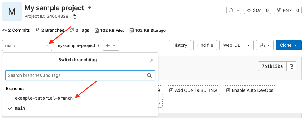 example-tutorial-branch.git checkout -b example-tutorial-branch -
