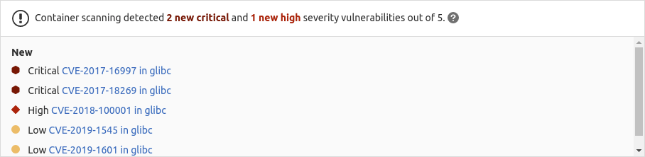 GitLab compares the found vulnerabilities between the source and target branches, and shows the information directly in the merge request.