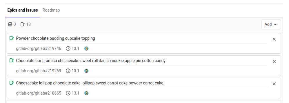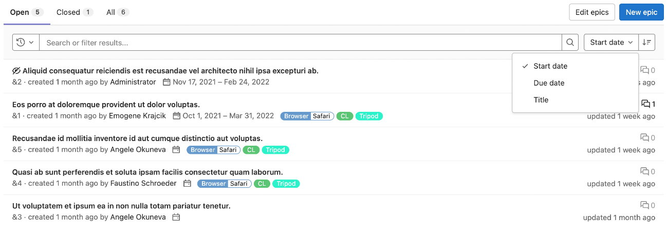 vue_epics_list. Disabled by default.- Enabled on GitLab.com and self-managed in GitLab 14.7.