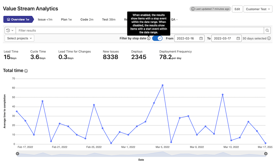 use_vsa_aggregated_tables. Disabled by default.- Filter by stop date toggle added in GitLab 14.9